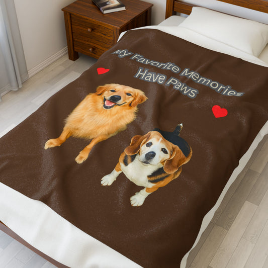 Cozy Velveteen Plush Blanket - "My Favorite Memories Have Paws" - Dog Lovers Gift