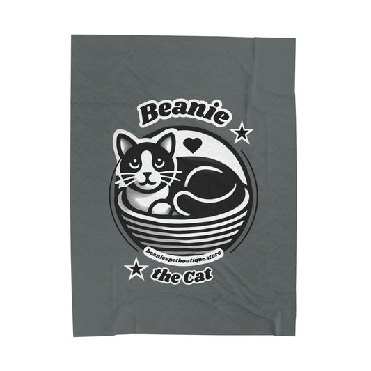 Velveteen Plush Blanket - Beanie the Cat Official Logo